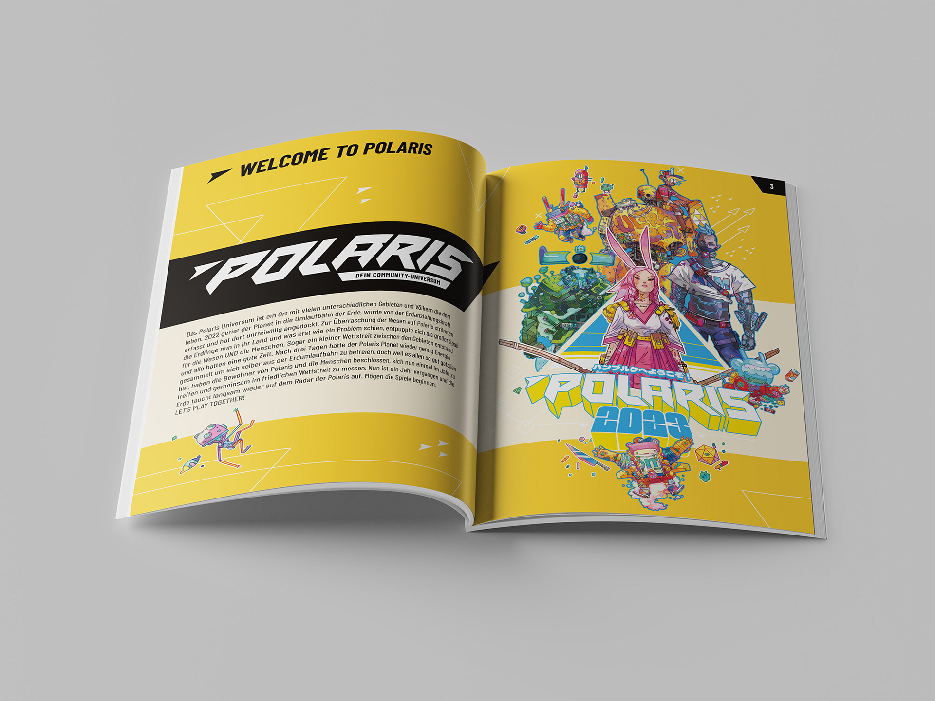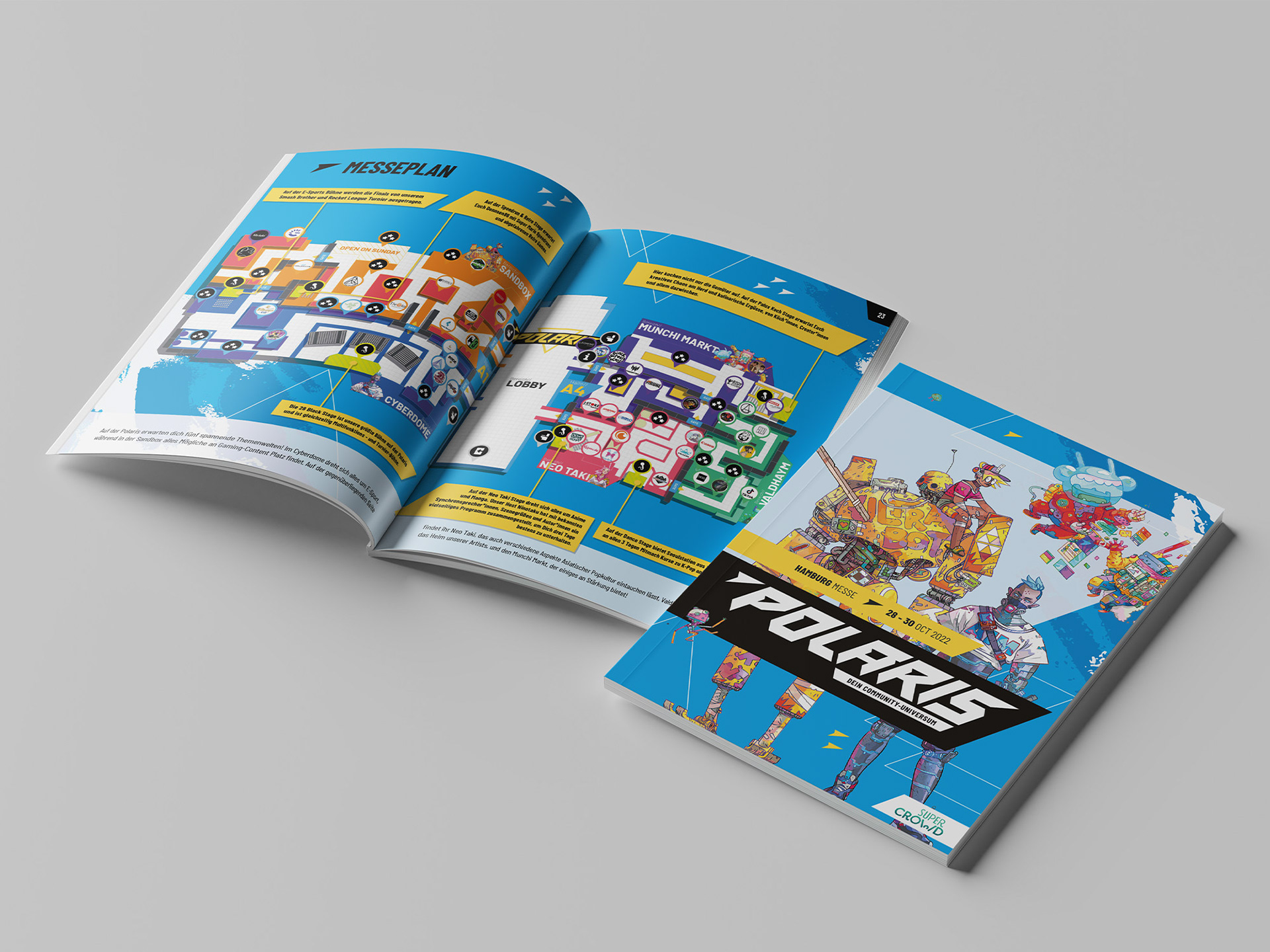 Mässkatalog för Polaris-mässan i Hamburg. Texter, bilder och illustrationer av Super Crowd.