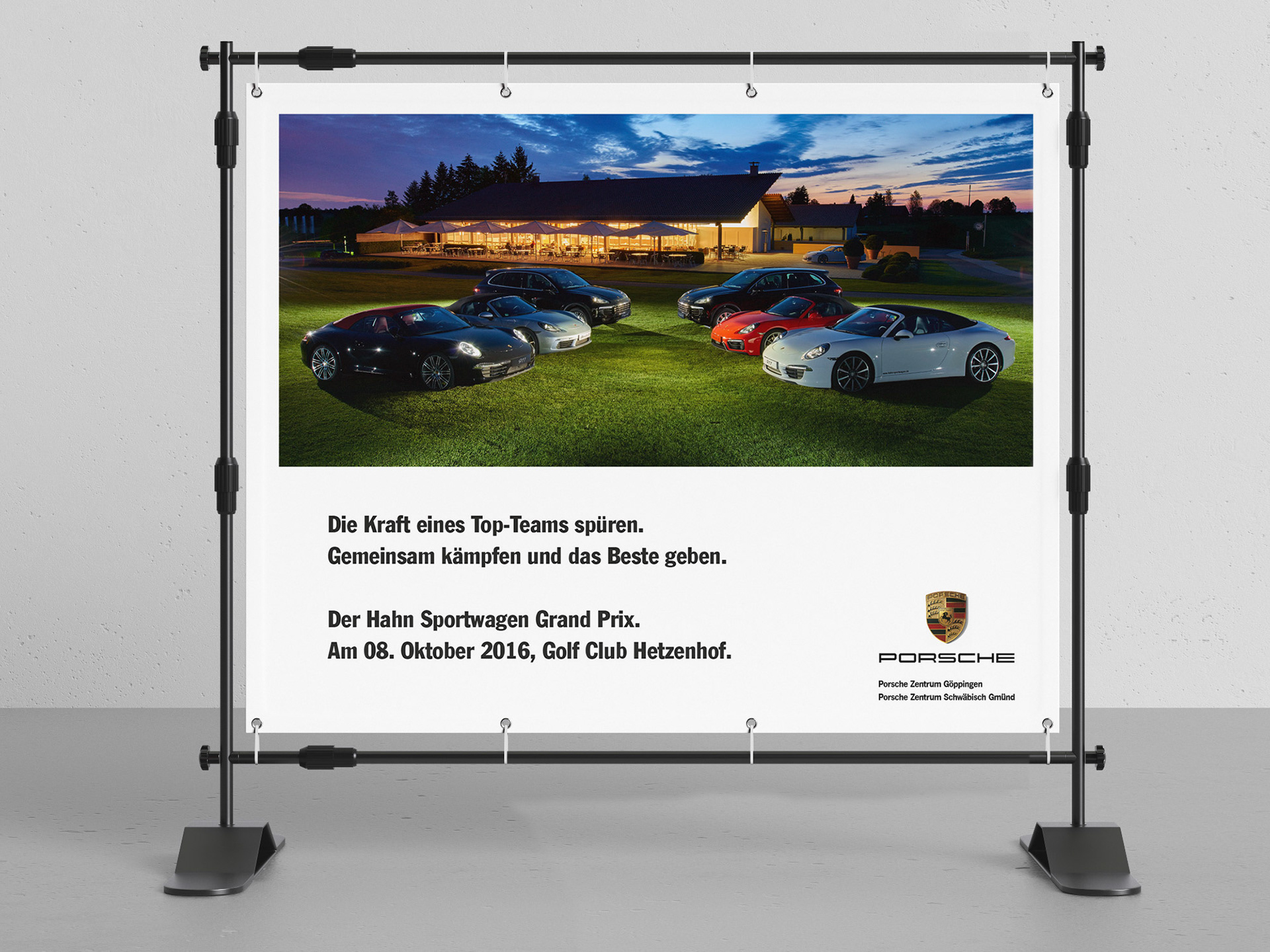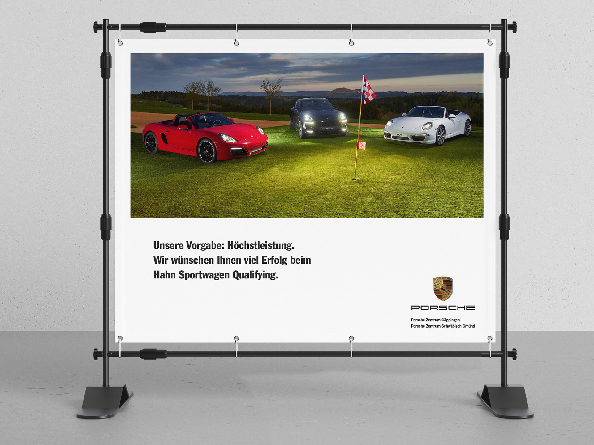 Samarbetskampanj mellan Porsche och en av de största golfklubbarna i södra Tyskland. Förutom banderoller i storformat gjorde jag också korta animationer av respektive motiv.
